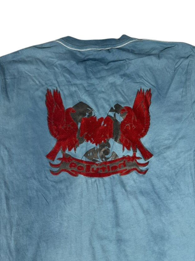 This Pollution T-shirt blends edgy streetwear with all-day comfort, featuring a signature distressed design and bold graphic details. Crafted from high-quality textured fabric, it offers a rugged yet stylish look perfect for layering or wearing solo.