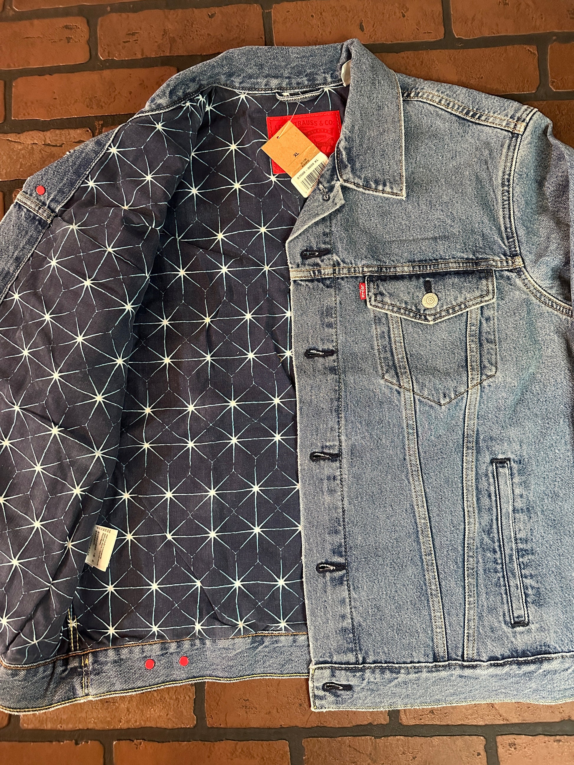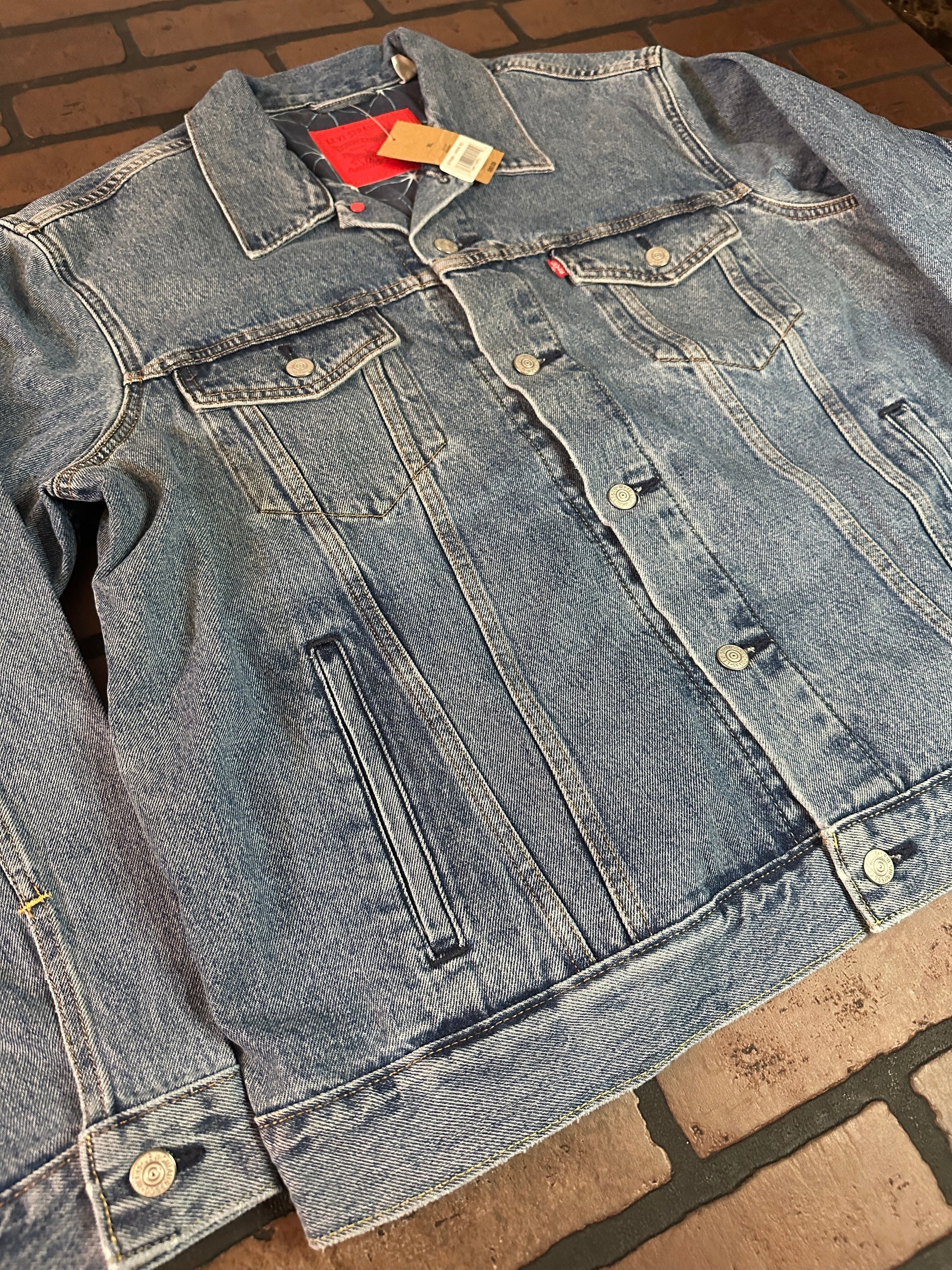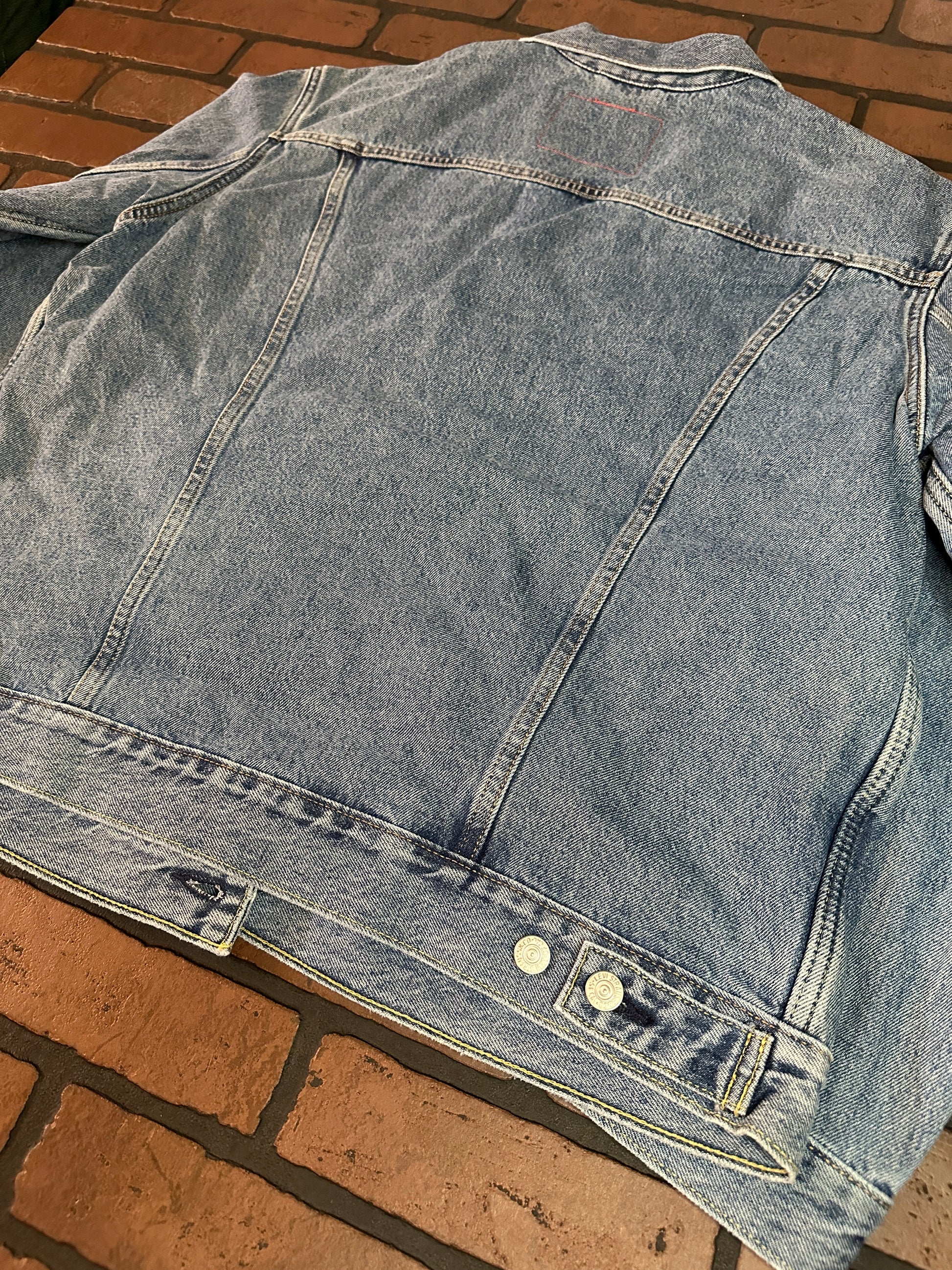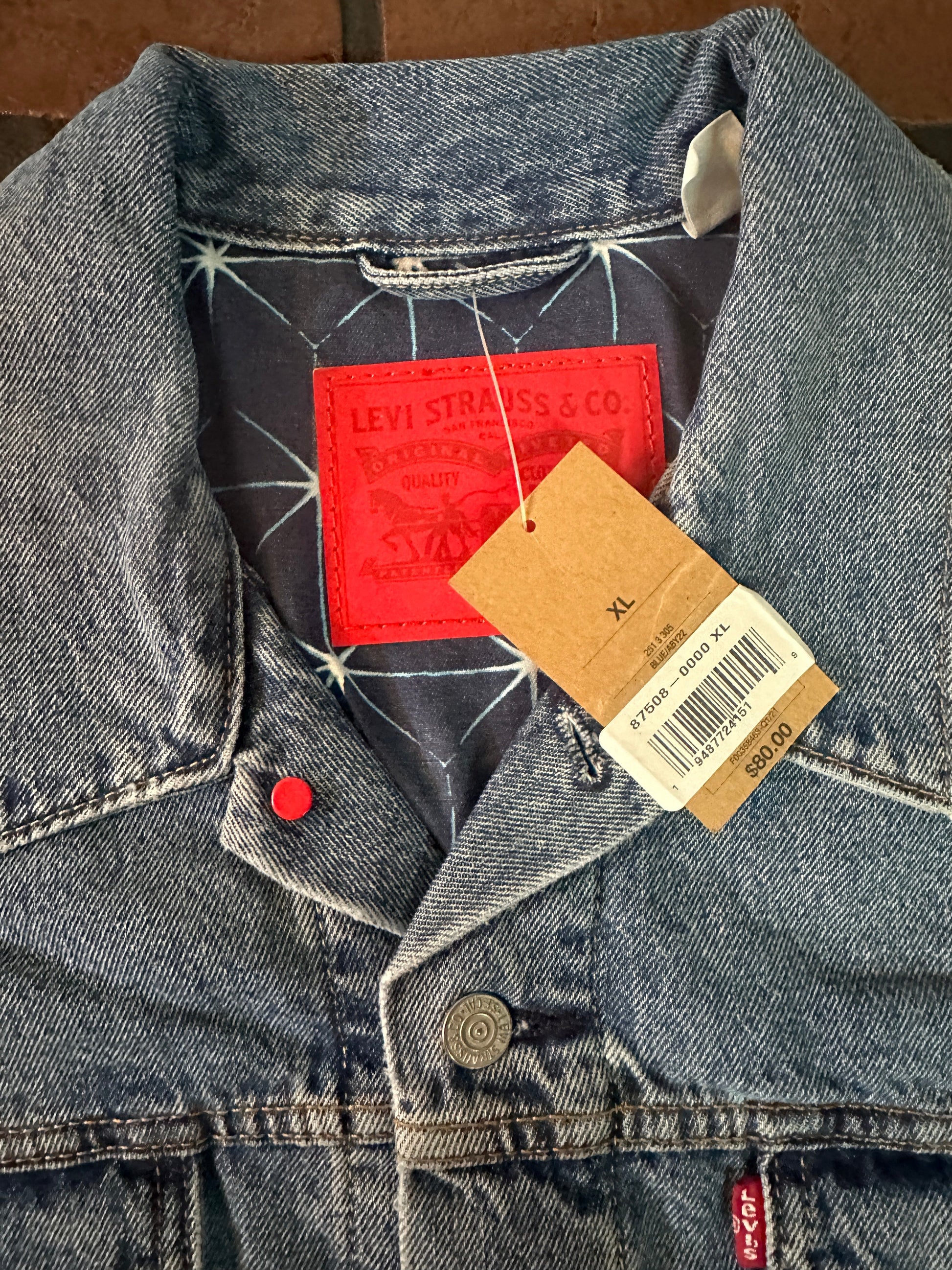 The Levi's Denim Jacket offers a modern twist on a classic style. Made from high quality denim, it features an oversized fit with vintage-inspired brass buttons. This versatile jacket is perfect for layering and adds effortless style to any outfit.