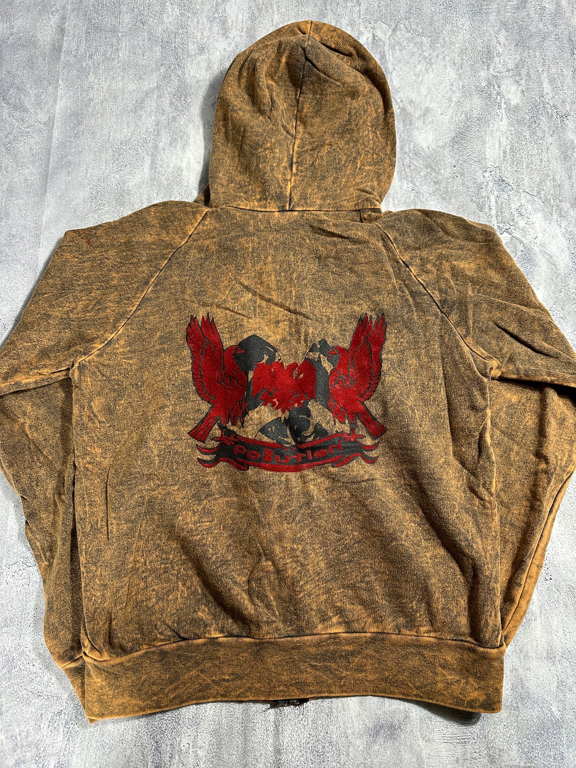 Pollution Hoodie Brown with Wing Graphic