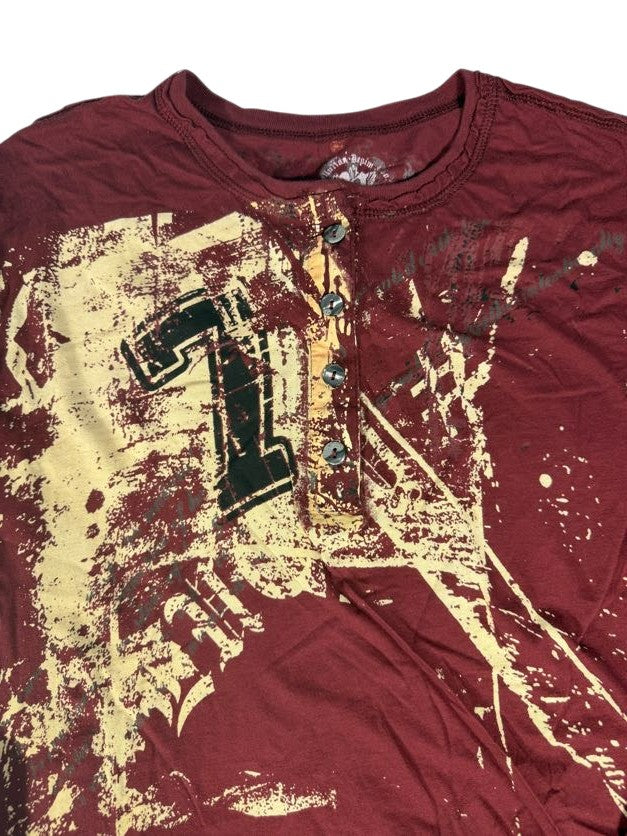 Red Pollution Long Sleeve Shirt with Quarter Button Up