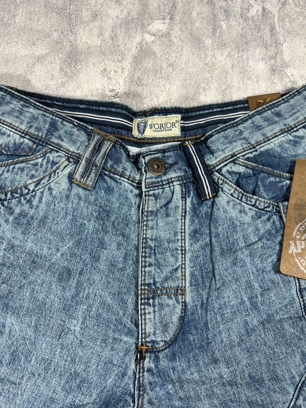 Brand new with tags, these Worrior jorts offer a sturdy 12-inch inseam for a timeless, laid-back fit. Made from durable denim, they combine casual comfort with bold, everyday style.